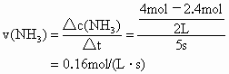在容积为2L的密闭容器中进行,已知起始时氨的物质的量为4mol,5s末时为2.4mol,则用氨的浓度变化表示该反应的速率为
