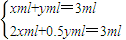 【答案】分析:令甲烷的体积为xml,一氧化碳的体积为yml,根据反应方程式分别用x、y表示出甲烷、一氧化碳各自消耗的氧气体积,根据二者的体积及消耗氧气的总体积,列方程计算.