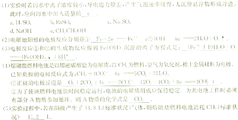 ②为了使该燃料电池长时间稳定运行,电池的电解质组成应保持稳定。为此电池工作时必须有部分A物质参加循环。则A物质的化学式是 。