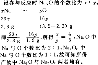 2.3 g纯净金属钠在干燥空气中被氧化后得到3.5 g固体,由此可判断其氧化产物是 | |