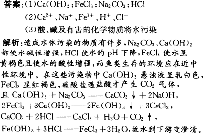 ÔÚÒ»ÌõÓãϺ¼¸ºõ¾ø¼£µÄСºÓ±ß´ÓÉÏÓε½ÏÂÓÎÒÀ´ÎÓÐËÄ×ù¹¤³§£®¼×¡¢ÒÒ¡¢±û¡¢¶¡Ëij§ÅŷŵķÏÒºÖÐÿ³§Ö»º¬ÓÐNa2CO3¡¢FeCl3¡¢Ca(OH)2¡¢HClÖеÄÒ»ÖÖ£®Ä³ÖÐѧ»·±£Ð¡×é¶ÔºÓË®¼ì²âʱ·¢ÏÖ£º¼×´¦ºÓË®³ÊÈé°×É«£¬ÒÒ´¦ºÓË®ÏÔºìºÖÉ«£¬±û´¦ºÓË®±ä»ë×Ç£¬¶¡´¦²úÉúÆøÅÝ£¬ºÓË®ÈÔÇ壮ÊԻشð£º