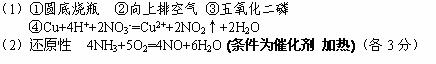 (2)乙同学利用图Ⅰ装置制取氨气和氧气的混合气体,并且利用图Ⅱ装置验证氨的某些性质。A中加入浓氨水,B中加入过氧化钠固体,C中加入碱石灰,E内放置催化剂(铂石棉),按气流方向连接各仪器 a → b→ c→ h。请完成下列问题: