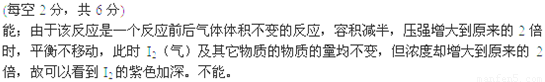 (6分)如图所示,600K时,在容积可变的透明容器内,反应2HI(气)