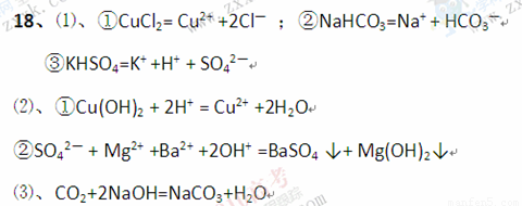 ⑶写出与离子反应方程式CO2+2OH-=CO32-+H2O所对应的其中一个化学方程式