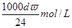 点评:该题是基础性试题的考查,主要是考查学生对物质的量浓度计算的熟悉了解程度,难度不大。该题的关键是明确质量分数、密度与物质的量浓度的关系,然后在依据化学式直接列式计算即可。