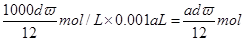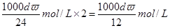 某氯化镁溶液的密度为d g/cm3,其中镁离子的质量分数为w,a mL该溶液中Cl—的物质的量为 。