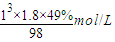 £¨3£©ÖÊÁ¿·ÖÊýΪ49%µÄÁòËáÈÜÒº£¬ÆäÃܶÈΪ1.8g/cm3£¬ÔòÆäÎïÖʵÄÁ¿Å¨¶ÈΪ______mol?L-1£®