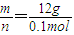 £¨4£©1molij¶þ¼Û½ðÊôµÄÁòËáÑÎÖк¬ÓÐ4molÑõÔ×Ó£¬Ôòº¬Á¿Îª0.4molÑõÔ×ÓµÄÁòËáÑεÄÎïÖʵÄÁ¿ÊÇ0.1mol£¬M=