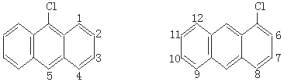 (图Ⅰ) (图Ⅱ) 欲求二氯蒽的种数,须先观察其等同位置。蒽只有3个不同位置(图Ⅱ)。然后将一个Cl原子分别固定在蒽的①、②、③位上,使另一个Cl原子在蒽分子的其他有H位置上逐次移动,注意不要重复,便得二氯代物种数(图Ⅲ、图Ⅳ、图Ⅴ)。