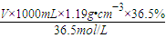 (3)①设盐酸的体积为VL,则溶质的质量为V×1000mL×1.19g?cm-3×36.5%,溶质的物质的量为