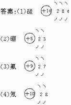 | 解析:(1)L层有8个电子,则M层有4个电子,故A为 (2)当次外层为K层时,最外层电子数则为3,是 (3)单质在常温下与水剧烈反应产生O2的是F2. (4)当次外层为K层时,D为