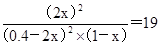 平衡浓度(mol/L) (0.4-2x) (1-x) 2x