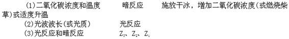 (3)图中Z1、Z2、Z3的差异表现在光合作用中 反应的不同,如果Z因素代表植物生长发育期,则代表幼苗期、营养生长期和现蕾开花期的曲线依次是 。