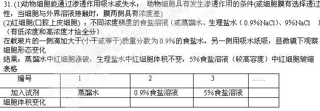 £¨14·Ö£©Ä³Ð£ÉúÎïʵÑéС×éÒª¶Ô¡°¶¯Îïϸ°ûÊÇ·ñÒ²ÄÜͨ¹ýÉøÍ¸×÷ÓÃÎüË®ºÍʧˮ¡±½øÐÐʵÑé̽