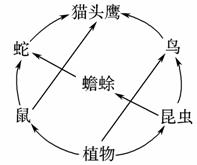 (4)植物―→昆虫―→蟾蜍―→蛇―→猫头鹰 (5)植物