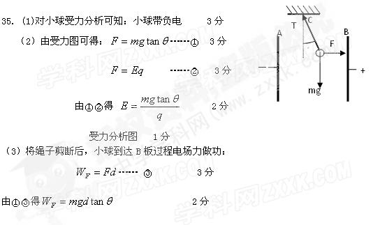 如图6所示A、B是电容器的两个极板,极是一匀强电场,B板接电源的正极,一带电小球质量为m,带电量的大小为q,小球被一轻质细绳系着,细绳的一端固定在C点,静止时细绳与竖直方向的夹角为