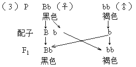 (1)黑色 (2)BB,Bb,bb (4)乙与丙交配,如果后代不出现性状分离,则丙为纯合体;如果出现性状分离,则丙为杂合体。 |