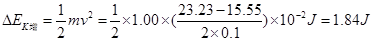 (2)若所用交流电的频率为50Hz,该同学经正确操作得到如图所示的纸带,把第一个点记做O,第一、第二点间的距离约为2mm,另选连续的4个点A、B、C、D作为测量的点,且 A、B、C、D各点到O点的距离分别为12.29cm、15.55cm、19.20cm、23.23cm。根据以上数据知,从O点到C点,重物的重力势能的减少量等于________J,动能的增加量等于________J。(已知所用重物的质量为1.00kg,当地重力加速度g=9.80m/s2,取三位有效数字)