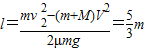 (2)物块滑上小车,与小车发生相对滑动的过程中,M所受的合力为m对它的摩擦力,根据动量定理μmgt=MV,求出物体冲上小车到与小车相对静止所用的时间.