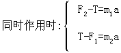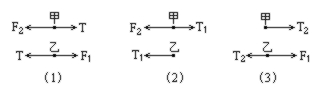 (2)m甲m乙只有F2作用时: (3)m甲m乙只有F1作用时 比较a、a1、a2大小,T、T1、T2大小即可判断出 答案为ABC.