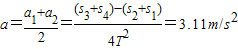 (2)物体做匀加速直线,由逐差法△x=aT2得: