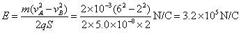 如图所示,绝缘的光滑水平桌面高为h=1.25m、长为s=2m,桌面上方有一个水平向左的匀强电场。一个质量为m=2×10-3 kg、带电量为q=+5.0×10-8 C的小物体自桌面的左端A点以初速度vA=6m/s向右滑行,离开桌子边缘B后,落在水平地面上C点。C点与B点的水平距离x=1m,不计空气阻力,取g=10m/s2。