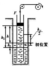 其他力有管内、外的大气压力和拉力F,因为液体不可压缩,所以管内、外大气压力做的总功p0p(R2-r2)h2-P0pr2h1=0,故外力做功就只是拉力F做的功,由功能关系知 W1=DE ⑤ 即 活塞移动距离从h1到H的过程中,液面不变,F是恒力F=p2p0,做功 W2=F(H-h1)=pr2p0(H-h1)=4.71´103J 所求拉力F做的总功为W1+W2=1.65´104J