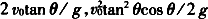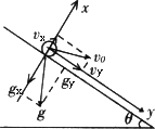 解析:建立如图所示坐标系,将v0及g分解到x和y方向上有: vx=vxsinθ,vy=v0cosθ, gx=gcosθ,gy=gsinθ. 可见,在x方向上,小球以vx为初速度,以gx为加速度做匀减速直线运动,在该方向上速度减小到零时小球离斜面最远.设此过程历时为t1,则有: t1=vx/gx=v0sinθ/gcosθ=v0tanθ/g. 由对称性可知小球从最远点再回到斜面上历时也为t1,故小球飞行时间为t=2t1=2v0tanθ/g.最远距离xmax=v0sinθ)2/2gcosθ=