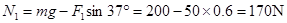 如图所示,质量为20kg的物体放在水平地面上,已知物体与水平地面间的动摩擦因数为0.3。现给物体施加一个与水平面成370角的斜向上的拉力F=50N的作用,则物体受到的摩擦力多大?(设最大静摩擦力和滑动摩擦力相等,取g= 10m/s2 ,sin370 = 0.6 ,cos370 = 0.8)