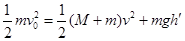 如图所示在足够长的光滑水平面上有一静止的质量为M的斜面,斜面表面光滑、高度为h、倾角为θ。一质量为m(m<M)的小物块以一定的初速度沿水平面向右运动,不计冲上斜面过程中机械能损失。如果斜面固定,则小物块恰能冲到斜面顶端。如果斜面不固定,则小物块冲上斜面后能达到的最大高度为 ![]()
