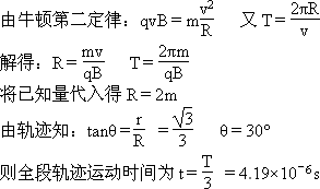(2)在图中过O2向AO1作垂线,联立轨迹对称关系侧移总距离d=2Rsin2θ= |