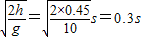 解答:解:直尺下降的高度h=1-0.55m=0.45m