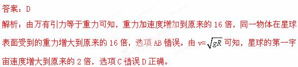(2013江西省红色六校联考)一些星球由于某种原因而发生收缩,假设该星球的直径缩小到原来的四分之一,若收缩时质量不变,则与收缩前相比 ( )