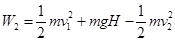 跳水运动员从高H的跳台以速度v1水平跳出,落水时速度为v2 ,运动员质量为m,若起跳时,运动员所做的功为W1 , 在空气中克服阻力所做的功为W2 ,则