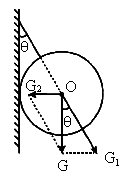 如图所示,将重球受到的重力分解:重力产生两个效果.第一,使绳绷紧产生形变,第二挤压竖直墙面.因而按这两个效果分解.找出相应角度θ.作平行四边形.由力的平行四边形定则或是直角三角形的知识来求.由力的分解示意图得,由物体平衡知,绳子的张力,球对墙的压力