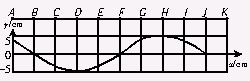 如图B-9所示,A、B、C、D、E、F、G、H、I、J、K是弹性介质的质点,相邻两点间的距离都是0.5m.质点A从t=0时刻开始沿y轴正方向振动,振幅为5cm.经过0.1s时间,A第一次到达最大位移处,此时波恰好传到C点.试在图中画出t=0.45s时刻的波形图.