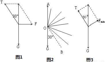 解答:解:(1)分析物体受力情况,作出力图,如图1.由平衡条件得:F=Gtan30°=