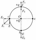 在场强为E的匀强电场中,取O点为圆心,r为半径作一圆周,在O点固定一电荷量为+Q的点电荷,a、b、c、d为相互垂直的两条直线和圆周的交点.当把一试探电荷+q放在d点恰好平衡(如右图所示,不计重力)