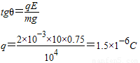 (2)带电小球所带的电量q的大小是1.5×10-6C;