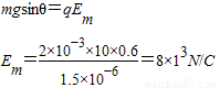 (3)若要使小球静止在图示位置,所加的匀强电场的最小值为8×103N/C,方向垂直细线向上..