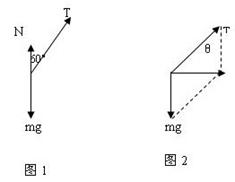 >ω0,故小球离开桌面做匀速圆周运动,则N=0此时小球的受力如图2.设绳子与竖直方向的夹角为θ,则有