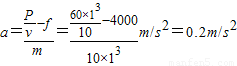 质量10t的汽车,额定功率是60kw,在水平路面上行驶的最大速度为15m/s,设它所受运动阻力保持不变,则汽车受到的运动阻力是 N;在额定功率下,当汽车速度为10m/s时的加速度 m/s2.