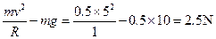 ②若水在最高点速度为V=5m/s,水对桶的压力是多少?(g=10m/s2)