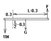 一均匀木杆, 每米重10N, 支点位于离木杆的左端点0.3m处. 现将一重为11N的物体挂在木杆的左端点上. 设在木杆的右端点施一大小为5.0N的竖直向上的力, 恰能使木杆平衡, 则木杆的长度L=_________m. (保留1位小数)