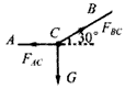 解:如图,设重物P的重力为G,AC、BC绳的拉力分别为FAC、FBC,由结点C的平衡可知: