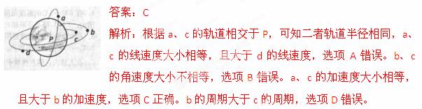2013陕西省西安市五校联考如图所示,a、b、c、d是在地球大气层外的圆形轨道上运行的四颗人造卫星。其中a、c的轨道相交于P,b、d在