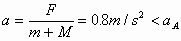 如图所示,质量为M=8kg的小车B放在光滑的水平面上,在小车右端加一个水平向右的恒力F=8N,当小车向右运动的速度达到v0=1.5m/s时,在小车右端轻轻的放上一个大小不计、质量m=2kg的小物块A,物块与小车间的动摩擦因数μ=0.2,小车足够长, g取10m/s2。求从A放上小车开始经过t=1.5s后A物体位移的大小。![]()
