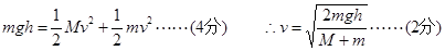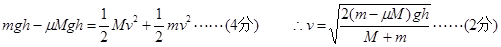 【解析】由题意知,整个过程A和B的速度大小相等,设B着地时速度为v,则此时A的速度也为v……(2分)