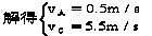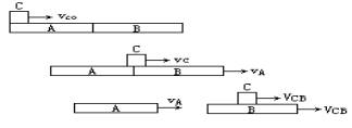 要搞清A、B、C运动的物理图景,在此基础上灵活选择合外力为零的系统以及与解题有关的状态,假设正方向后,用动量守恒定律列出方程.例如由学生列出的方程中,选(1)、(2)组成方程组代入数值 0.1×10=(0.5+0.4)vA+0.1vC (1) 0.1×10=0.5vA+(0.4+0.1)=1.5(2)