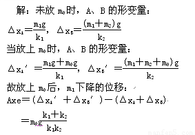 如图所示,两木块的质量分别为m1和m2,两轻质弹簧A、B的劲度系数分别为k1和k2,若在m1上再放一质量为m0的物体,待整个系统平衡时,m1下降的位移为多少?